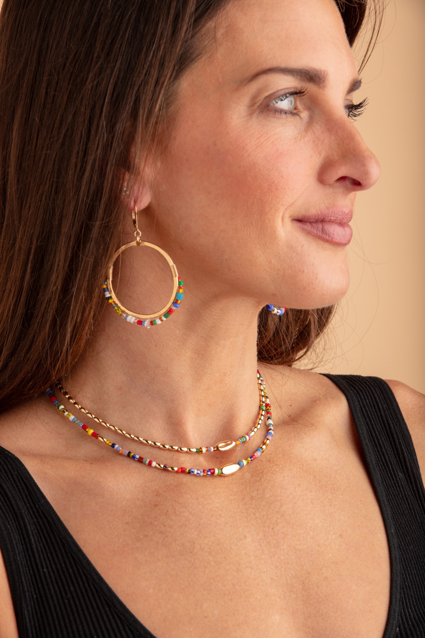 14k gold-filled hoops, gracefully adorned with hand-beaded assorted African beads.