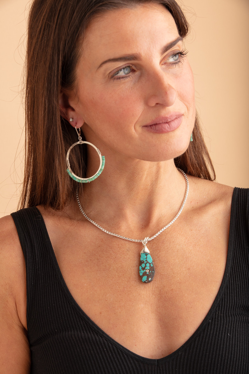Sterling silver vermeil chain featuring vibrant turquoise accented with a crystal inlay. A refined 16” design.